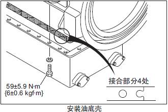 (1) 三菱S6R發(fā)動機油底殼墊片的分割處(4處)涂抹密封劑(Herdite),安裝油底殼墊片。