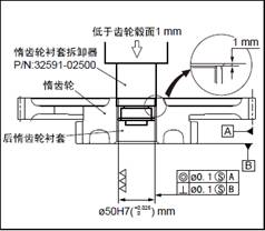 注: 后惰齒輪襯套是以半成品狀態(tài)提供的,因此壓入后必須進行鉸孔加工。