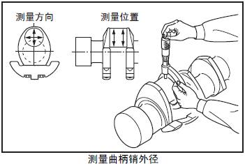 5.5 測量三菱S12柴油發(fā)動機曲軸的曲柄銷和三菱S12柴油發(fā)動機曲軸頸的外徑