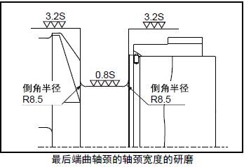 注意研磨時不要改變軸頸端部倒角的半徑。對于表面硬度明顯降低的三菱S12柴油發(fā)動機曲軸,要再進行熱處理并進行磁性探傷檢查。研磨加工后的表面精度均應(yīng)滿足標準值要求。