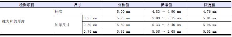 注: 使用的前后2片三菱S12柴油發(fā)動機推力片的厚度差不超過0.25 mm。
