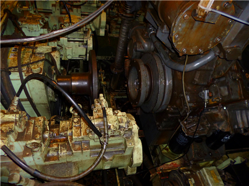 用齒輪拆卸器將三菱S12柴油發(fā)動機曲軸齒輪從三菱S12柴油發(fā)動機曲軸上拆出。