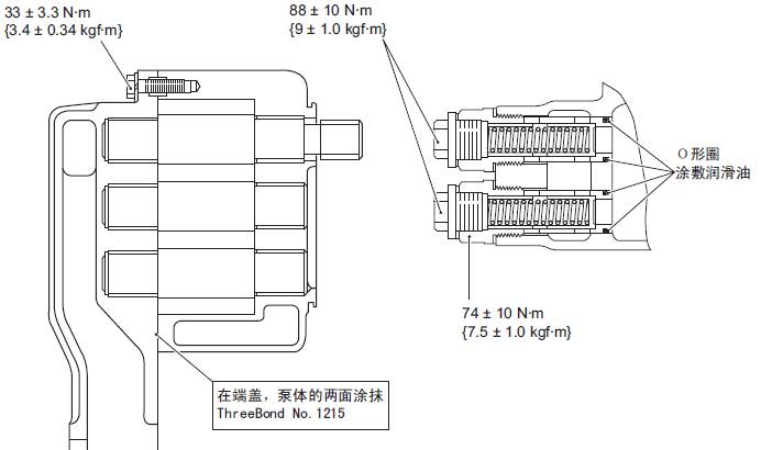 (1) 在油底殼安裝面的潤滑油通路部位,安裝O形圈。