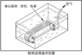在冷卻器芯的潤滑油通道部位,進(jìn)行1.5MPa{15 kgf/cm2} 的壓縮空氣測試,檢查芯部的損傷或龜裂。發(fā)現(xiàn)有漏泄時,更換新的冷卻器芯。