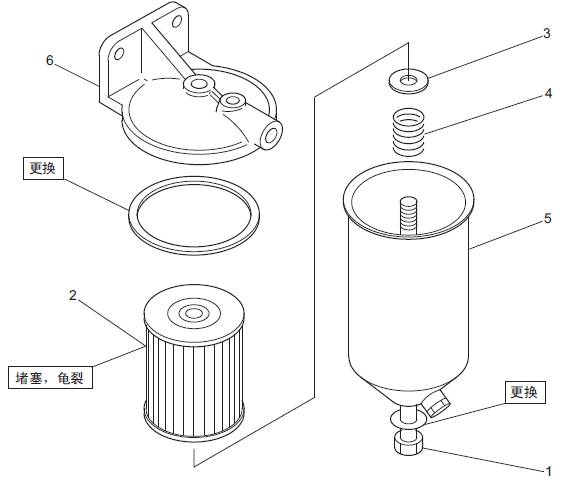 (2) 濾清器報警器的亮燈開始壓力超出標(biāo)準(zhǔn)值時,更換新品。
