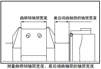 5.6 測量曲柄銷軸頸寬度、最后端三菱R16柴油發(fā)動機曲軸頸的軸頸寬度