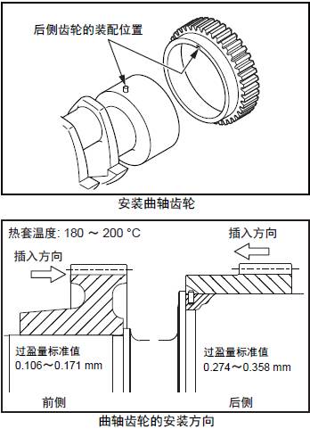 注: 通過加熱三菱R16柴油發(fā)動機曲軸齒輪拆出時,加熱溫度應(yīng)在180ºC以下。