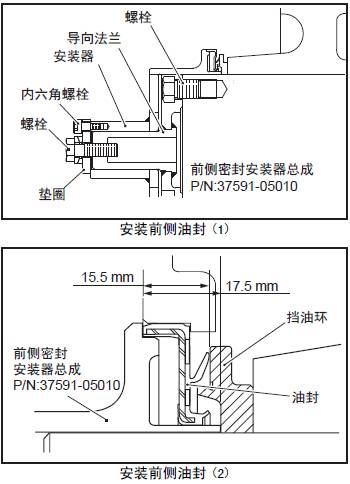 (4) 旋緊導(dǎo)向法蘭上的螺栓,將三菱柴油機(jī)油封裝入前端蓋。