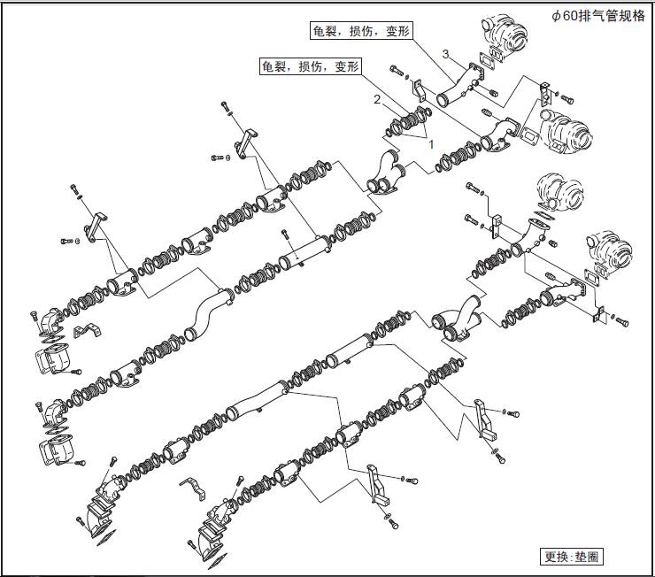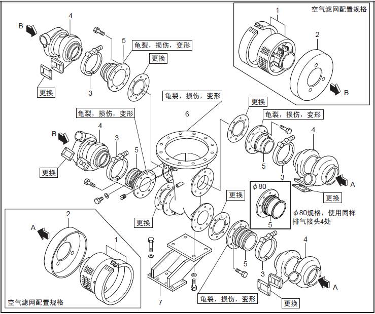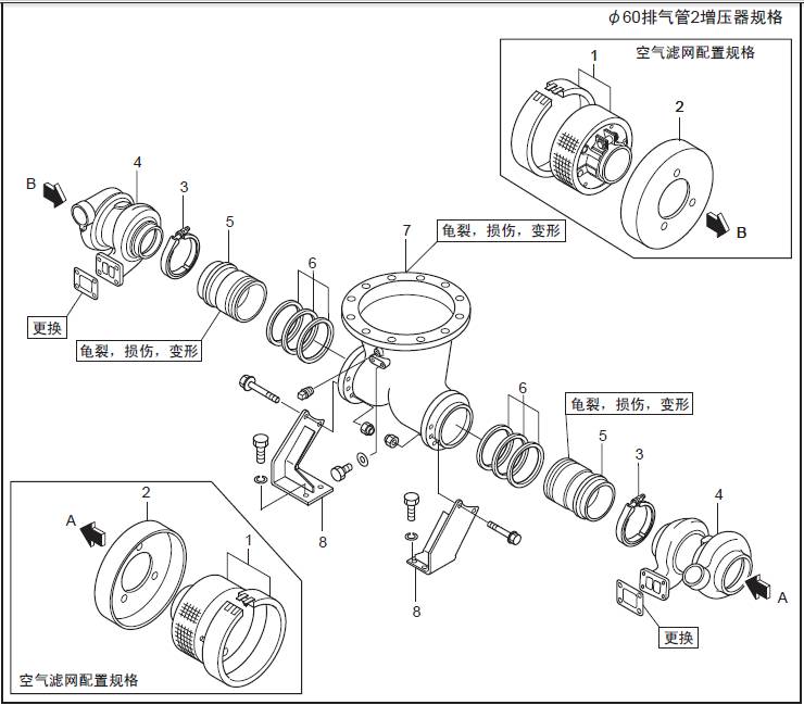 1 聯(lián)軸器2 饒性管 3 排氣歧管