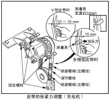 1.6.2 皮帶的張緊力調(diào)整( 三菱S16柴油機(jī)充電機(jī))