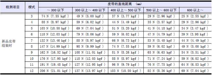 (2) 檢測(cè)皮帶的張緊力( 下陷量)。