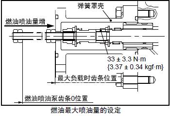 檢查調(diào)速器輸出柄至三菱R16柴油發(fā)動(dòng)機(jī)燃油噴油泵齒條的連接。確認(rèn)在停止?fàn)顟B(tài)時(shí)控制齒條處于不噴油位置,操作停止柄確認(rèn)控制齒條回到"0" 位。