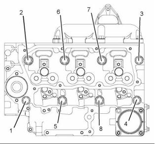 (1) Tighten the glow plugs (3) in the cylinder head to
