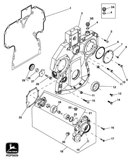 John Deere約翰迪爾強(qiáng)鹿柴油發(fā)動機(jī)正時(shí)齒輪蓋、水泵、曲軸下惰輪零件圖冊
