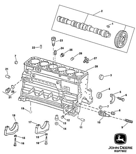 John Deere約翰迪爾強(qiáng)鹿6068 6.8L柴油發(fā)動機(jī)氣缸體、曲軸主軸承蓋和凸輪軸零件圖冊