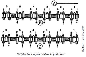 4. Adjust valve clearance on No. 2, 4 and 6 exhaustvalves and No. 3, 5, and 6 intake valves.