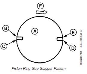 5. Position gap in rectangular compression ring onopposite side of piston from oil control ring (C) gap.