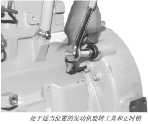 1. 用 JDE81-1 或 JDE83 飛輪旋轉(zhuǎn)工具和 JDG1571 或JDE81-4 正時(shí)銷,將一號(hào)活塞鎖定在汽缸壓縮沖程上止點(diǎn)。