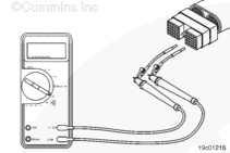 從 ECM 上斷開康明斯ISB5.9 G CM2180 發(fā)動機線束 ECM 1 號和 2 號接頭。從康明斯ISB5.9 G CM2180 發(fā)動機線束上斷開混合器進口壓力傳感器。設(shè)置萬用表以便測量電阻。