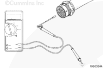 調(diào)整萬用表以便測量電阻。將一根測試導(dǎo)線插入 OEM 線束接頭上的最大康明斯ISB5.9 G CM2180 發(fā)動機轉(zhuǎn)速開關(guān)信號觸針,然后將其連接到一支萬用表表筆。使萬用表的另一根表筆接觸康明斯ISB5.9 G CM2180 發(fā)動機缸體接地。