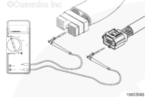 測量從康明斯ISB5.9 G CM2180 發(fā)動機線束中的變壓器回路觸針至缸體接地之間的電阻。