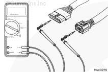 將測試導(dǎo)線連接到萬用表表筆。將與測試導(dǎo)線連接的萬用表另一支表筆插入 OEM 線束接頭上的開關(guān)回路導(dǎo)線。測量電阻。