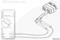 從 ECM 上斷開康明斯ISB5.9 G CM2180 發(fā)動機線束康明斯電子控制模塊(ECM) 1 號接頭。從康明斯ISB5.9 G CM2180 發(fā)動機線束上斷開變壓器。設(shè)置萬用表以便測量電阻。