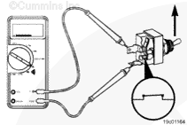 找到最大康明斯ISB5.9 G CM2180 發(fā)動機轉(zhuǎn)速開關(guān)。給這些導(dǎo)線貼上帶有開關(guān)位置或?qū)Ь€號碼的標(biāo)簽。從開關(guān)上拆下電氣接頭。調(diào)整萬用表以便測量電阻。將萬用表一個表筆接觸開關(guān)一個端子。將另一根萬用表表筆接觸開關(guān)的另一端子。