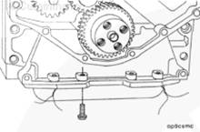 安裝凸輪軸。輕輕推進時,旋轉凸輪軸并小心地讓凸輪軸穿過凸輪軸襯套。當每個凸輪軸軸頸都通過襯套時,凸輪軸稍微下沉,凸輪軸凸輪便固定在襯套中。旋轉凸輪軸將使凸輪脫離襯套束縛,從而可以安裝凸輪軸。