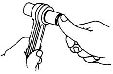 連桿扭曲的校正可將連桿夾在虎鉗上,用扭曲校正器、長(zhǎng)柄扳鉗或管子鉗進(jìn)行校正,用扭曲校正器校正連桿扭曲的方法如圖所示。