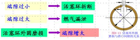 端隙:活塞環(huán)處于工作狀態(tài)時的開口大小。是活塞環(huán)工作時的熱脹間隙。防止受熱而卡死。