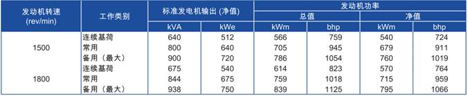 4000系列4006-23TAG2A柴油發(fā)動機(jī),功率:1500rev/minErt685 kWm 1800rev/min 715 kWm