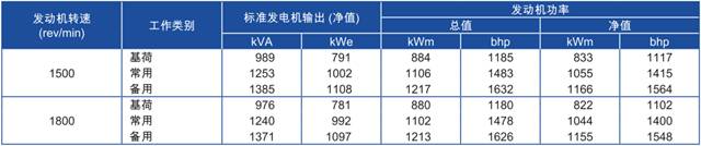 功率:于1500rev/min時,1166 kWm