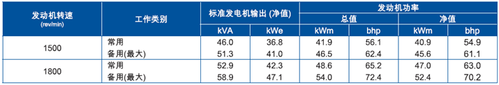 功率:1500 rev/min時,45.6 kWm
