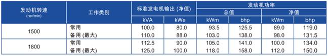 上表所有額定功率數(shù)據(jù)均為ISO/TR 14396/IS0 8528條件下操作時數(shù)據(jù)。