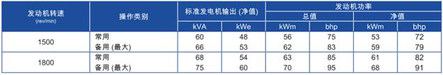 上表所有額定功率數據均為ISO/TR 14396/IS0 8528條件下操作時數據。