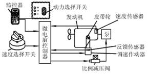 當駕駛員將速度選擇開關置于某一檔位時,選擇開關將檔位信號傳送給微電腦控制器,微電腦控制器處理該信號后,通過驅動電路向調速作動器傳送一電壓信號,調速作動器電機轉動,電機通過加速或減速拉線帶動皮帶輪轉動,皮帶輪帶動供油拉桿,使拉桿移動到和速度開關檔位相適應的位置上。安裝在調速作動器中的反饋傳感器將供油拉桿的位置信息傳遞給微電腦控制器,使微電腦控制器確認油桿的正確位置。
