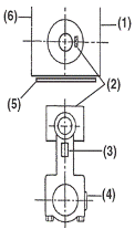 當(dāng)活塞裝配正確時(shí),刻印在連桿頂部的標(biāo)識(shí) 會(huì)和刻印在連桿上連桿和連桿蓋的裝配記號(hào)處于同一側(cè)。(106T系列除外)
