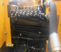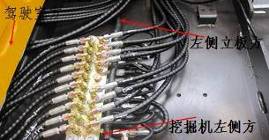 9個(gè)先導(dǎo)壓力傳感器位置由主閥上面移到駕駛室后面,如圖所示。由于先導(dǎo)管路順序發(fā)生了變化,所以電氣系統(tǒng)9個(gè)壓力傳感器線束走向和連接順序也進(jìn)行變化,先導(dǎo)線束從左側(cè)立板處分出,直接拉到先導(dǎo)閥塊處。但是同樣保證每個(gè)動(dòng)作壓力傳感器信號(hào)號(hào)碼和C8M一樣,