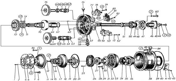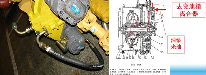 發(fā)動機的動力按如下線路輸入至泵輪,從發(fā)動機飛輪         彈性聯(lián)接板     泵輪罩       泵輪。
