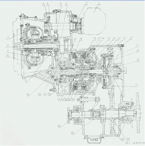 雙渦輪變矩器、行星變速箱,動力換檔,機液控制為ZL40/50裝載機配套