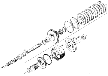 前進(jìn)三擋:嚙合前進(jìn)擋,三擋兩離合器: