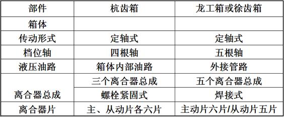 變速箱型式                定軸、常嚙合、液壓/撥叉換檔
