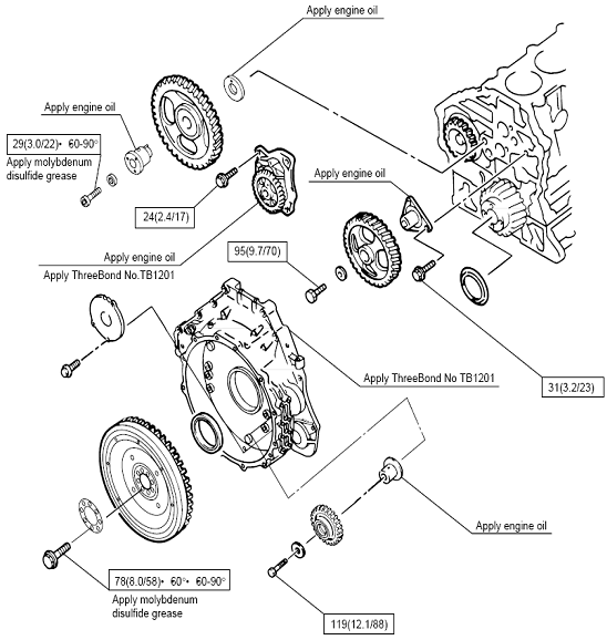 擰緊扭矩(分三步): 78 N·m, 600 , 600 – 900。