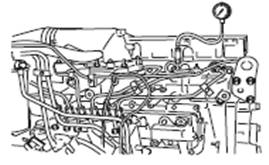 除去每個氣缸的預(yù)熱塞和噴油管。 將壓力表接在壓力表接頭上 用起動電機轉(zhuǎn)動發(fā)動機并記下壓力表讀數(shù)。(大約 200 轉(zhuǎn)/分)