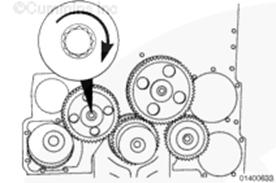 轉(zhuǎn)動曲軸以旋轉(zhuǎn)發(fā)動機,直至曲軸和凸輪軸齒輪上的指示標記對準。