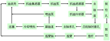 主、副油道鉆兩個斜孔,并通過主軸承孔連通,實現(xiàn)副油道供冷卻噴鉤的機油和潤滑油泵的機油。