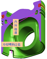 潤滑油沿環(huán)形油道圍繞燃燒室流動,可很好的冷卻活塞
