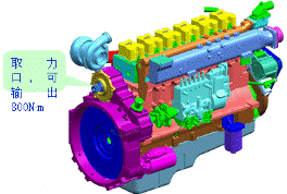 ¢      配套適應(yīng)性高:采用后置齒輪室,使發(fā)動機更窄,可以適合國內(nèi)各種重型車底盤。
