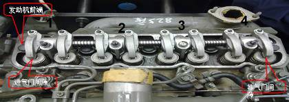 4.盤轉(zhuǎn)曲軸360度,按“雙排不進(jìn)”方法調(diào)整4缸上止點(diǎn)時(shí)氣門間隙